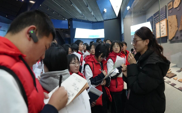 整个过程中,同学们认真填写《研学中探究单》,结合生物、地理学科知识,积极观察、提问、记录。带队教师与讲解员紧密配合,适时引导,将化石证据与课堂理论相印证,实现了博物馆资源与学校课程的有效衔接。 此次沉浸式研学活动,不仅拓展了学生的古生物学与地球科学视野,更引导他们在宏大深邃的生命叙事中,建立起对自然规律的敬畏之心与可持续发展的科学观念。活动在庄重的结营仪式中圆满结束。 |