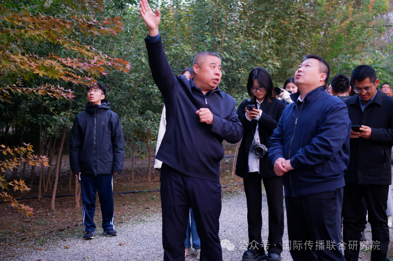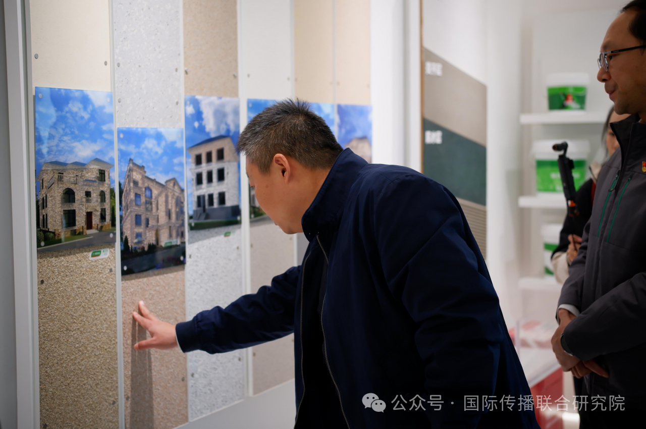 筑邦园林负责人向调研团介绍园林建设情况 面对气候变化这一全球挑战,中国企业的绿色转型与产业行动提供了切实的应对范例。河北三棵树涂料有限公司则展示了传统产业绿色化、数字化转型的生动实践。企业坚持研发环保产品,以“绿色智造”响应“双碳”目标,成为产业带动区域振兴的样本。在实现自身发展的同时,也成为通过产业升级带动区域振兴的样本,在环境保护与经济增长同向而行的同时,也为全球制造业的低碳转型提供了可操作的路径参考。 调研团师生参观三棵树涂料公司展览中心 这些来自博野的产业实践共同表明,中国县域的发展叙事之所以有力,在于它们剥离了宏大的抽象概念,回归到企业具体的抉择、技术与人的互动之中。它们共同印证:中国的发展,不是奇迹的堆砌,而是由无数这样立足实情、持续迭代的稳健步伐所构成。这构成了中国故事最可信的基底。 古今相融:地方叙事的创造性转化与对话 博野善于将历史遗存与生态资源转化为当代发展叙事。沙窝村“千年古梨园”存有百年以上古梨树8万余株,当地通过梨花节、电商直播等方式,推动“生态+文旅”融合,实现传统农业的创造性转化。也向世界表明,生态保护与经济发展可以协同共进,为全球的农业社区如何在守护自然遗产的同时促进乡村振兴,提供了生动的中国范本。