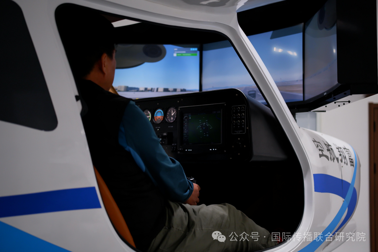 调研团成员体验富翔航空飞行模拟器