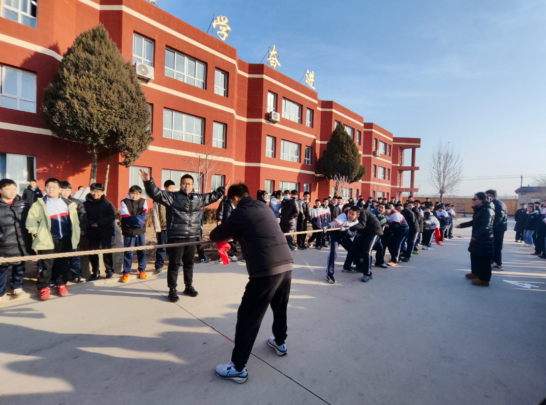 为丰富校园文化生活,增强班级凝聚力,培养学生团队协作精神,近日,博野县东墟学校拔河比赛在校园操场火热开赛。 初赛阶段,各班级组成的参赛队伍依次登场,随着裁判哨声响起,队员们迅速扎稳马步,双手紧握长绳,身体后倾,在“一二、一二”的整齐号子声中奋力拼搏。绳中间的红绸带时而左移,时而右摆,双方你来我往、互不相让。场外啦啦队的呐喊声、加油声此起彼伏,震彻校园,班主任们也在一旁挥臂鼓劲,与学生们并肩作战。