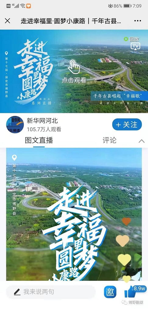 今天新华云直播来到博野,开启“走进幸福里·圆梦小康路”系列探访式直播,带网友深入了解这座千年古县如何乘着乡村振兴的东风,焕发新的生机,让老百姓的日子越过越好。 直播开启后,立刻刷爆了博野的朋友圈、微信群。据统计,本次直播在线观看量达到105.7万次,点赞量达到8.9万,评论留言300余条。