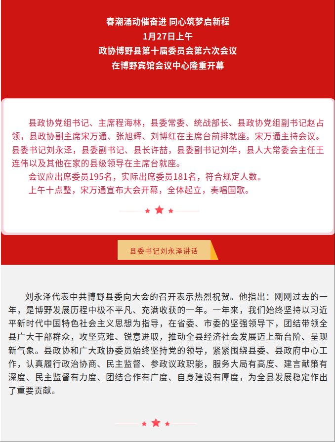 【聚焦两会】政协博野县第十届委员会第六次会议在县会议中心隆重开幕