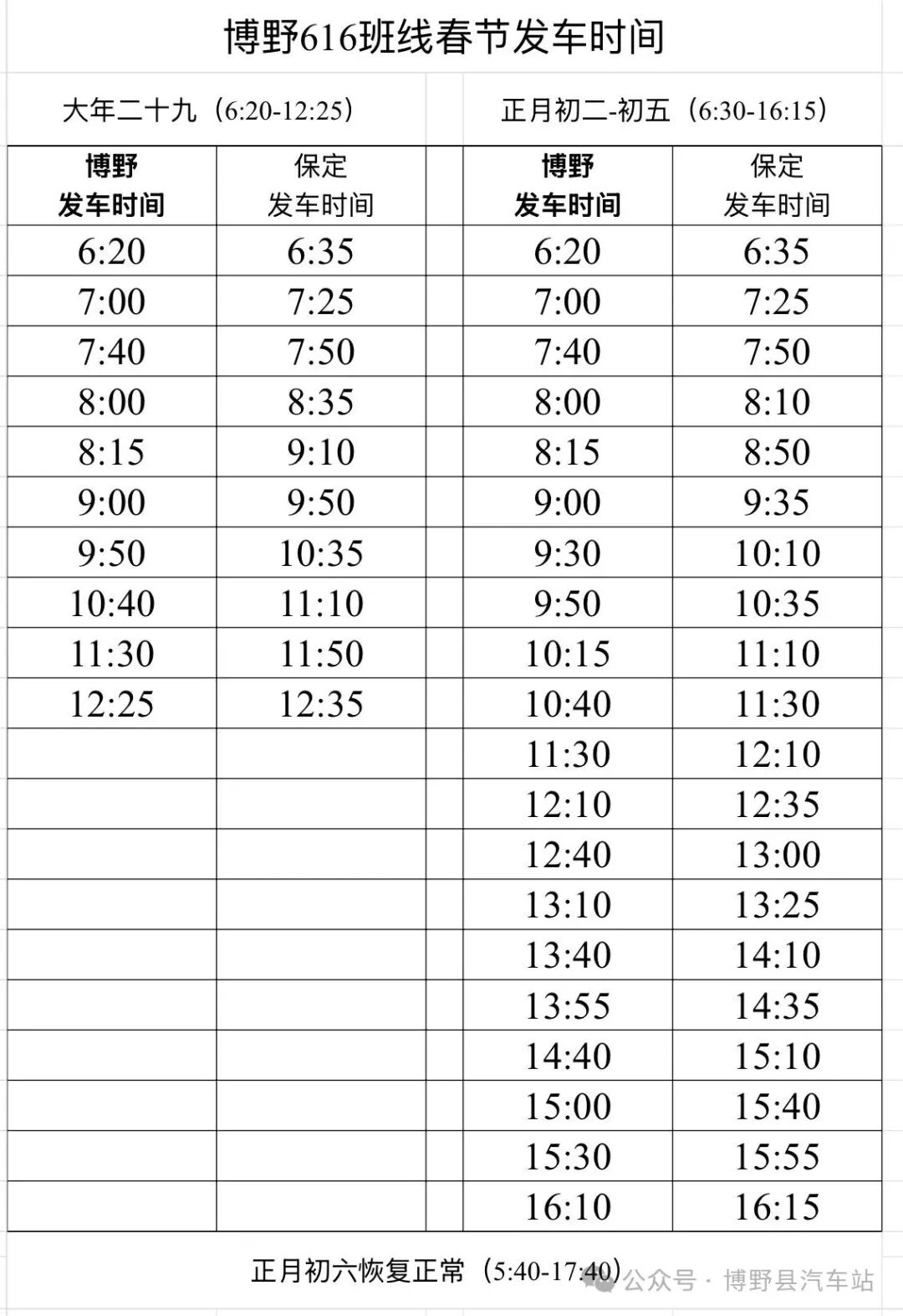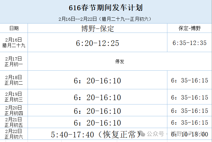 | 【2026年】博野汽车站春节期间旅客运输班次计划 |