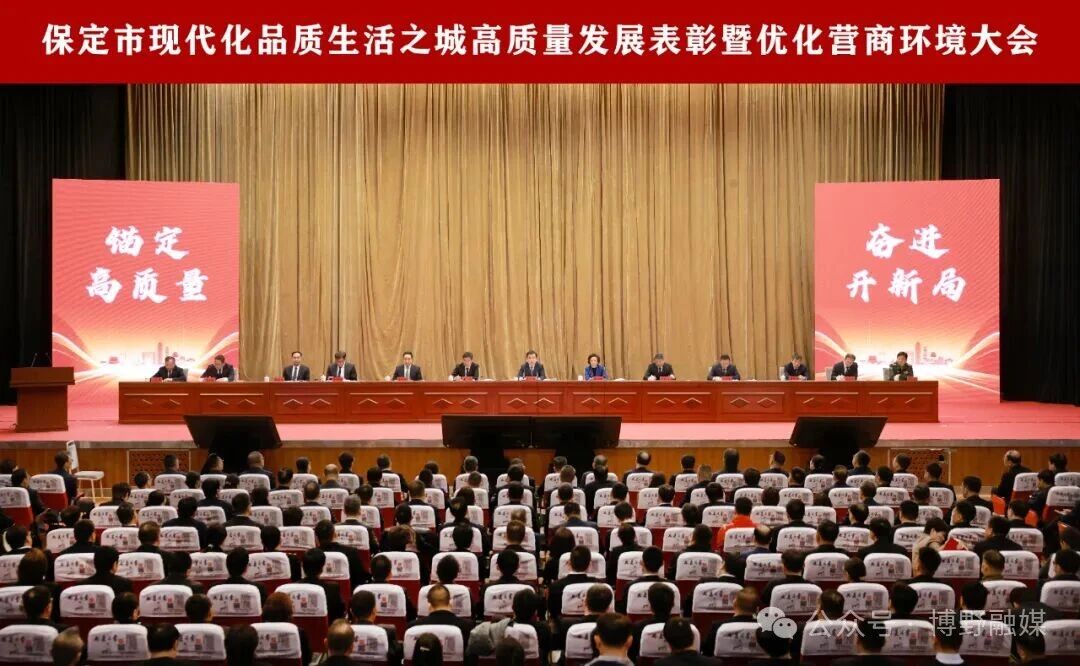大会现场。新畿辅客户端记者 曹云鹏 王田明 摄 自2021年以来,市委、市政府连续六年“新春第一会”聚焦现代化品质生活之城建设,总结经验、表彰先进,持续优化营商环境,不断凝聚千万人、一条心的磅礴伟力。百世开利会展中心门前广场上,一排排作为奖品的长城汽车整齐排列,会场内气氛热烈。大会播放建设现代化品质生活之城“十四五”工作纪实专题片。市领导王伟、吴向东分别宣读表彰和命名决定。市领导张贵宝宣读《2026年保定市营商环境优化提升行动方案》。党晓龙、闫继红等市领导为突出贡献奖、优秀民营企业和优秀民营企业家代表,以及高质量发展、建设现代化品质生活之城先进集体和先进个人代表,“保定工匠”“卓越工程师”代表颁发证书、奖牌、奖杯、奖品。乐凯集团、天峋航空科技(保定)有限公司、保定海关、竞秀区先锋街道主要负责同志作典型发言。 党晓龙在讲话时向受到表彰的先进代表以及现代化品质生活之城建设的贡献者、奋斗者和支持者表示衷心感谢并致以崇高敬意。他指出,五年来,全市上下牢记嘱托、感恩奋进,克服世纪疫情冲击、特大洪涝灾害影响、经济下行压力等多重阻碍,各项工作取得新进展、新成效、新突破,主要经济指标走在全省前列,城市转型和产业转型实现新突破,“7+20+N”现代化产业体系加速崛起,“十四五”圆满收官,保定站在了新的历史起点上。成绩的取得,根本在于习近平总书记掌舵领航,在于习近平新时代中国特色社会主义思想科学指引,在于党中央的坚强领导和省委的正确领导,也离不开全市广大干部群众的团结奋斗。在现代化品质生活之城建设中,每一名为保定发展贡献智慧和汗水的同志都很了不起。