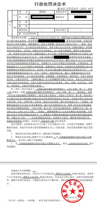 | 决定书(通知书)文号 | 冀 0637 交罚罚决字〔2025〕69号 | ||
