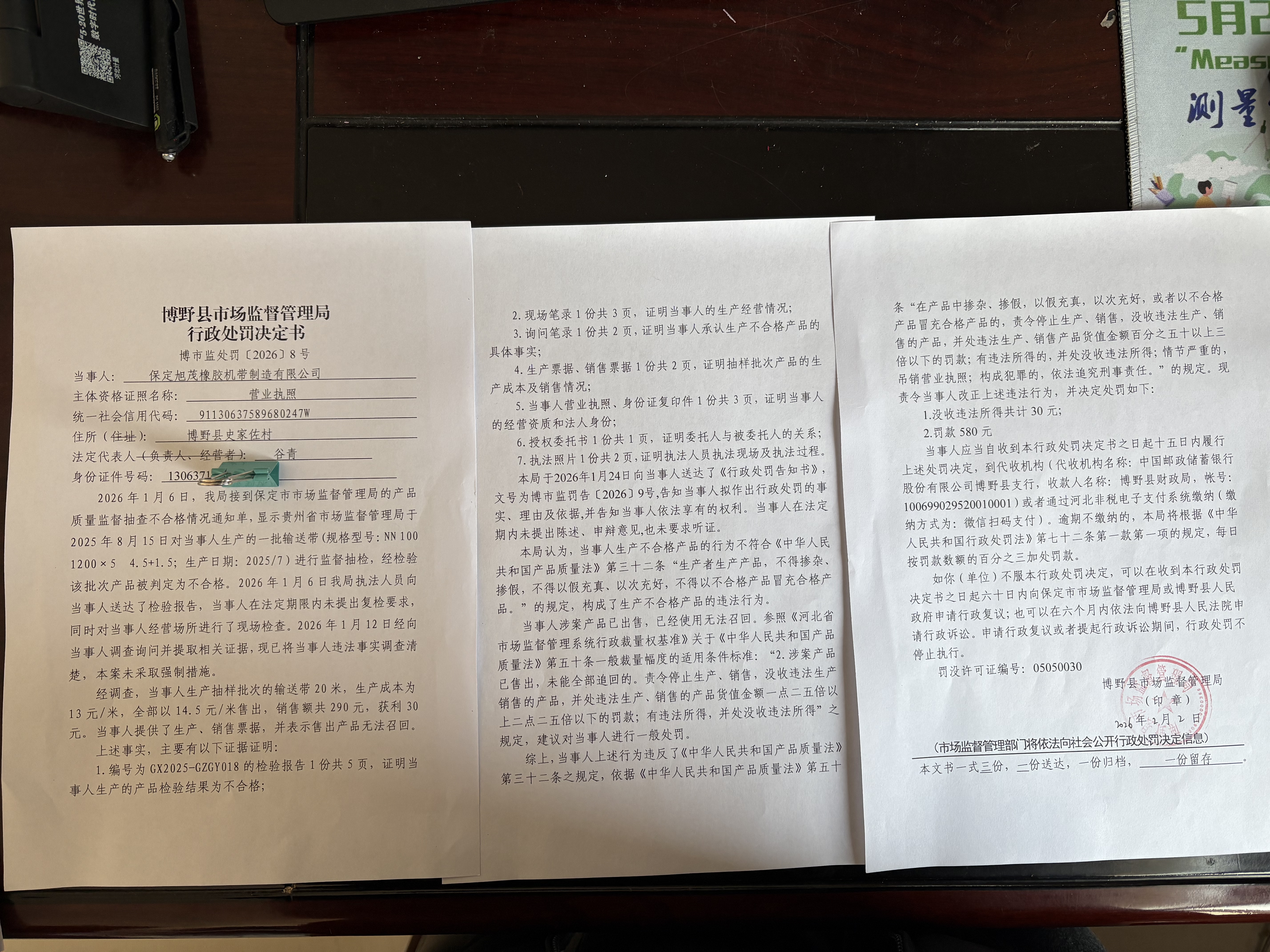| 博市监处罚【2026】8号 | 保定旭茂橡胶机带... | 生产不合格产品 | 没收违法所得、罚款 | 2026-02-02 | 博野县市场监督管理局 | 点击查看 |