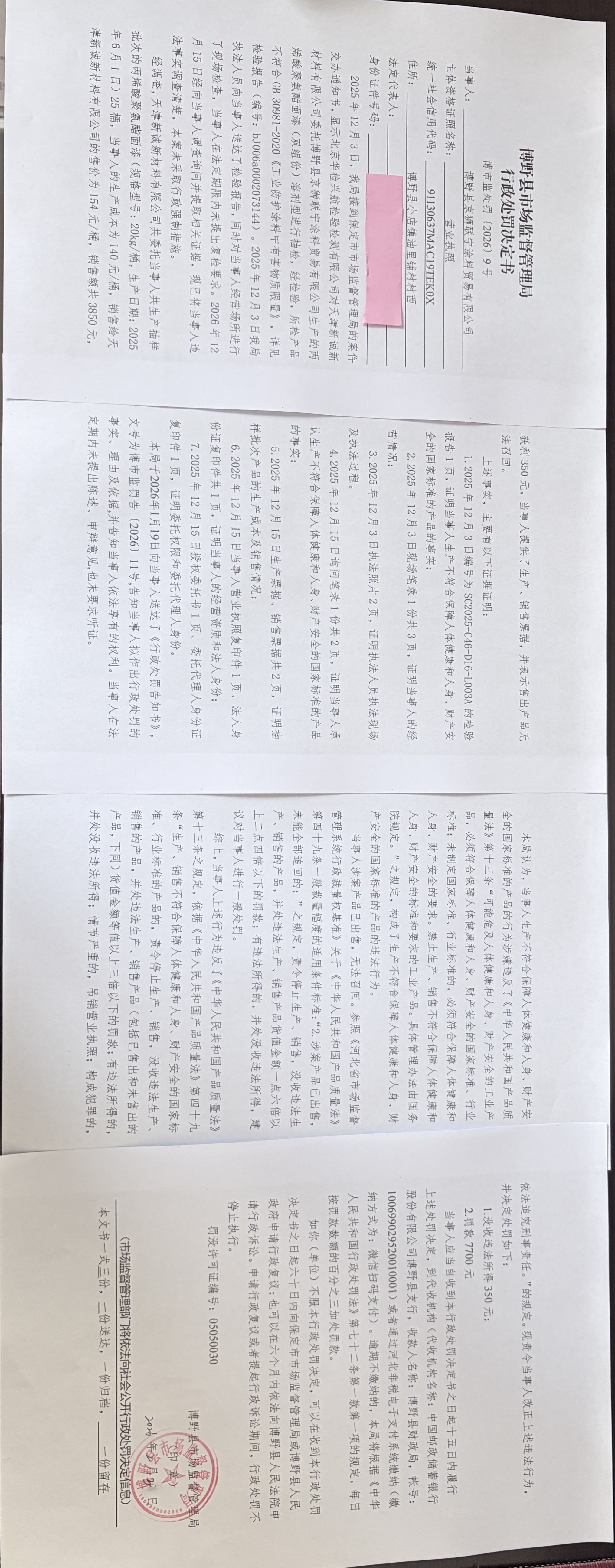 | 博市监处罚[2026]9号 | 博野县京狮联宁涂... | 生产不符合保障人... | 罚款、没收违法所得 | 2026-02-03 | 博野县市场监督管理局 | 点击查看 |