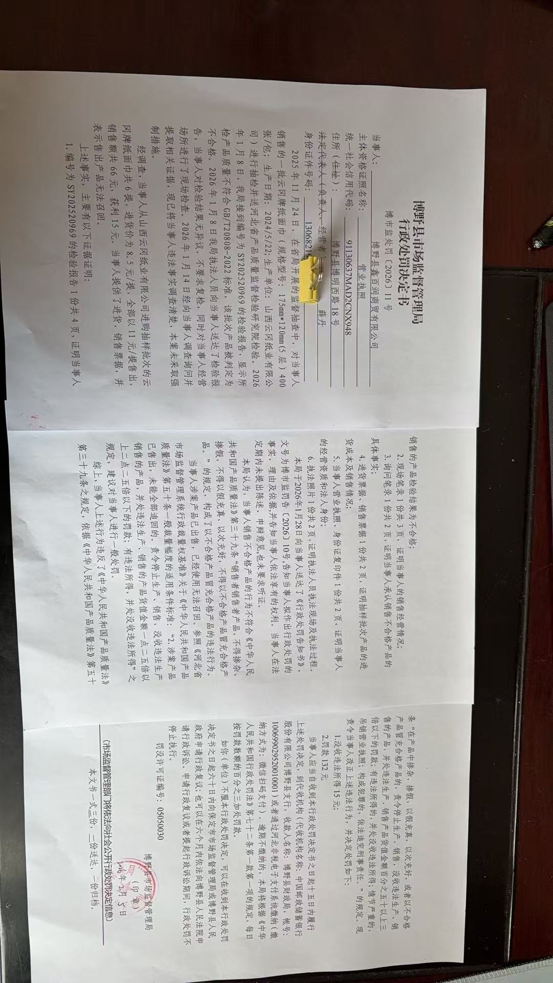 | 博市监处罚【2026】11号 | 博野县鑫百润商贸... | 以不合格产品冒充... | 没收违法所得、罚款 | 2026-02-05 | 博野县市场监督管理局 | 点击查看 |