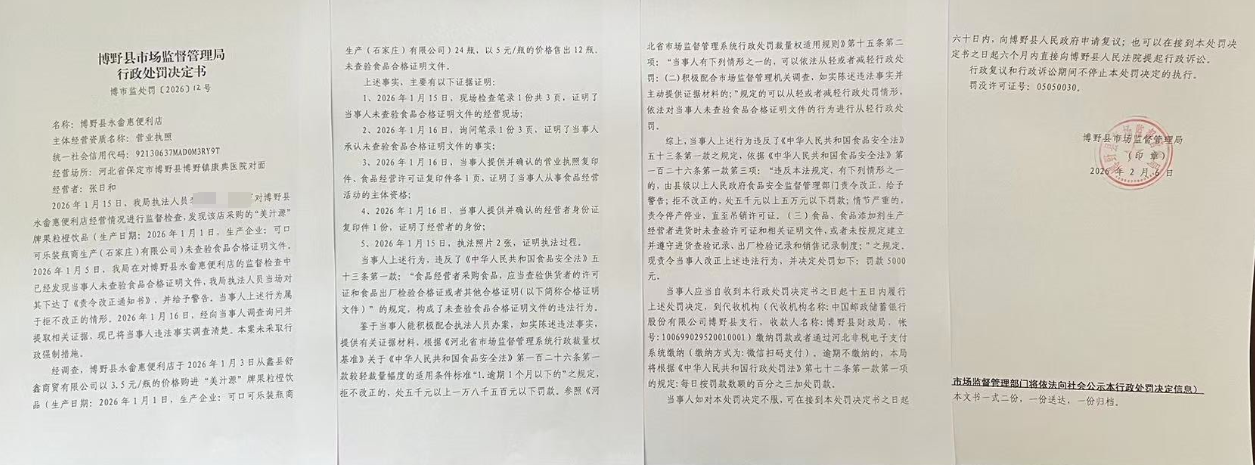 | 博市监处罚〔2026〕12号 | 博野县永畲惠便利... | 未查验食品合格证... | 罚款 | 2026-02-06 | 博野县市场监督管理局 | 点击查看 |