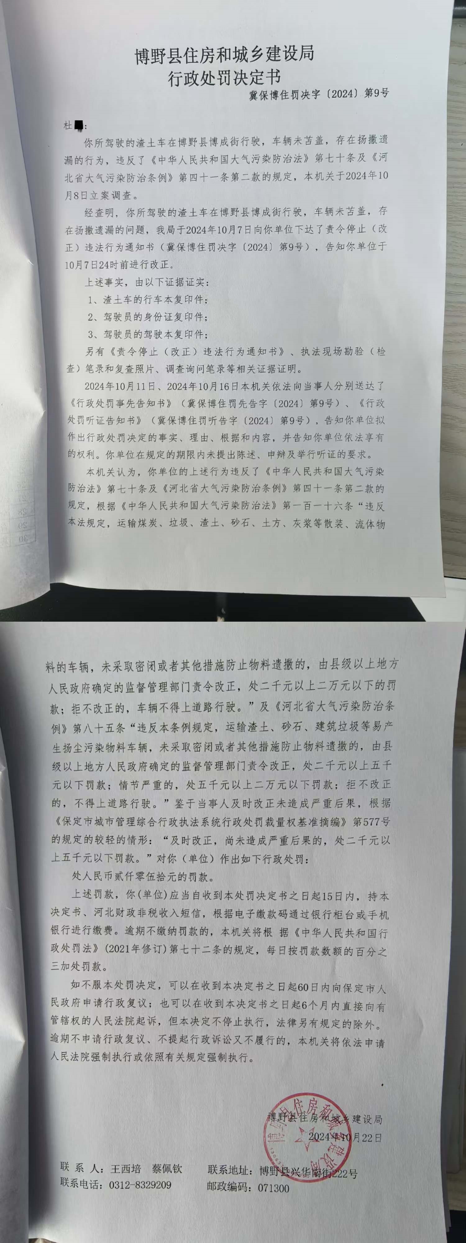 | 冀保博住罚决字【2024】第9号 | 杜*尧 | 当事人驾驶的渣土... | 罚款 | 2024-10-22 | 博野县住房和城乡建设局 | 点击查看 |
