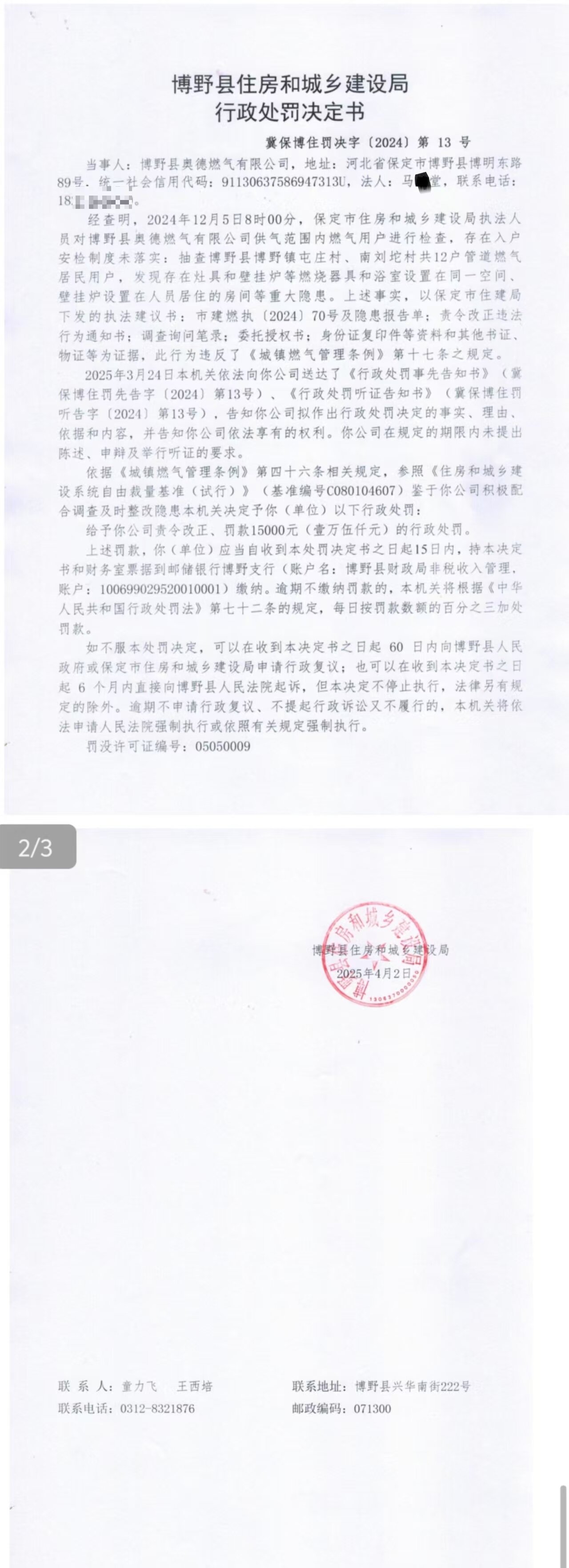 | 冀保博住罚决字【2024】第13号 | 博野县奥德燃气有... | 博野县奥德燃气有... | 罚款 | 2025-04-02 | 博野县住房和城乡建设局 | 点击查看 |