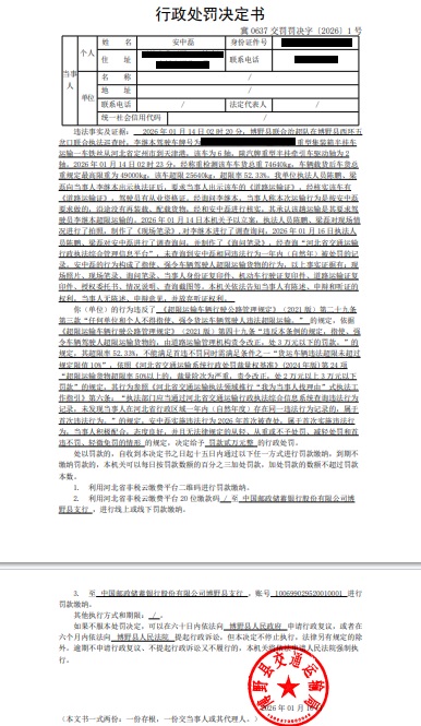 | 冀 0637 交罚罚决字〔2026〕1号 | 安中磊 | 安中磊指使、强令... | 罚款 | 2026-01-16 | 博野县交通运输局 | 点击查看 |