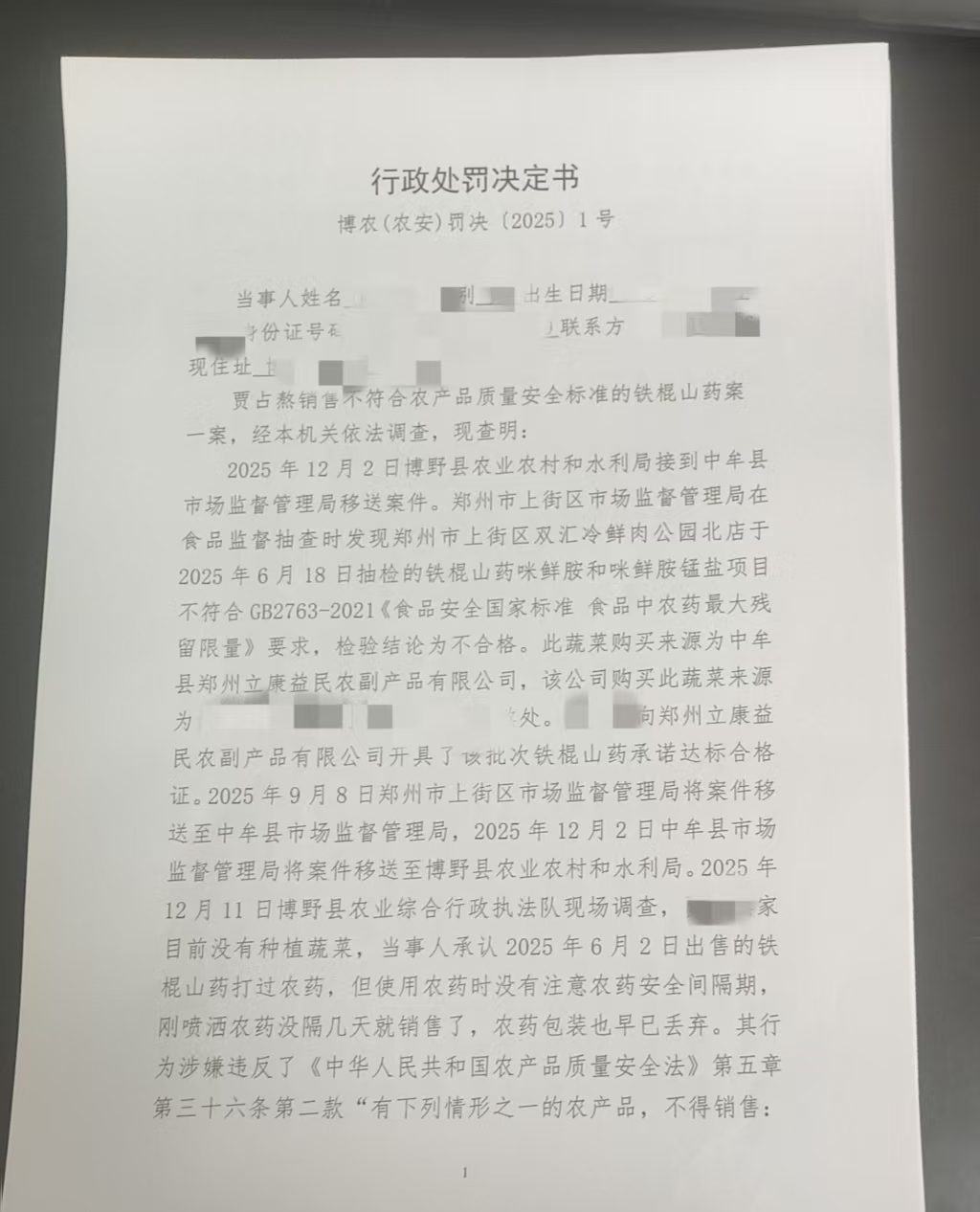 | 博农(农安)罚决〔2025〕1号 | 贾占熬 | 贾占熬销售不符合... | 行政处罚 | 2025-12-22 | 博野县农业农村和水利局 | 点击查看 |