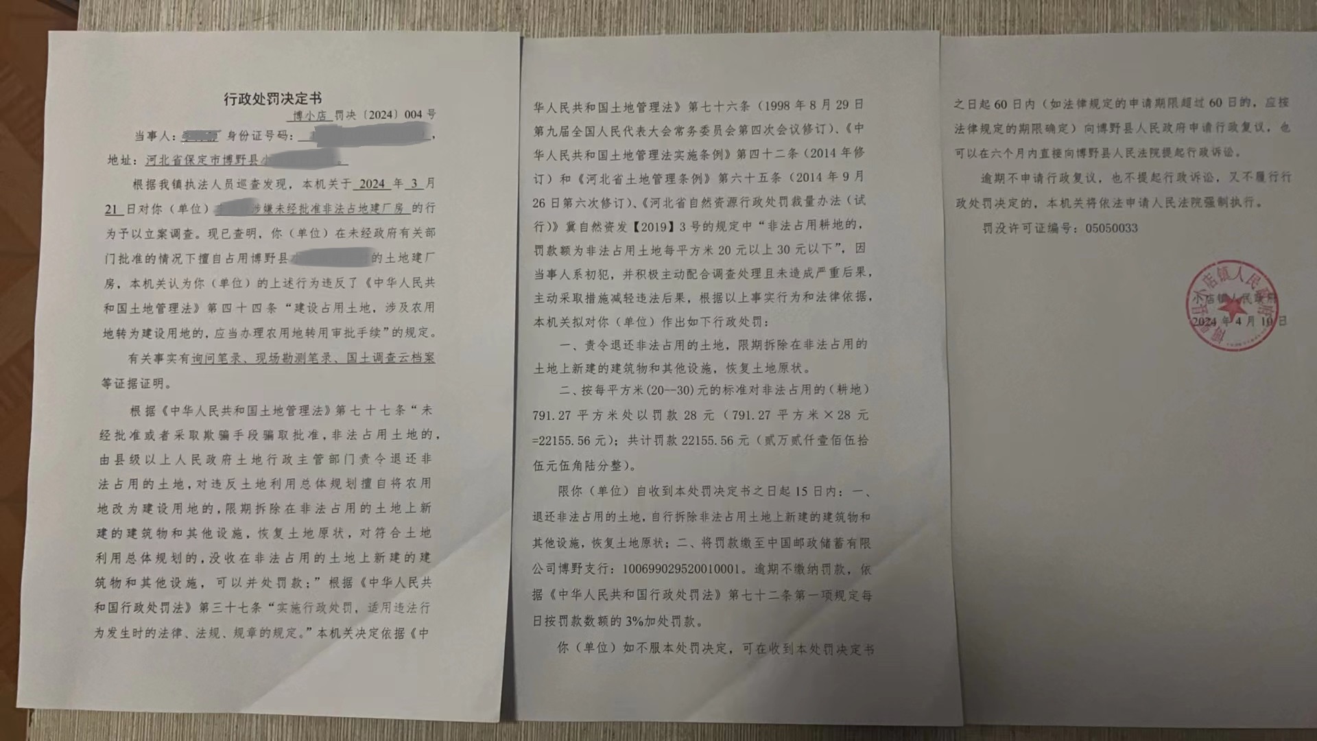 | 博小店罚决【2024】011号 | 李泽普 | 李泽普涉嫌未经批... | 行政处罚 | 2024-06-04 | 博野县小店镇人民政府 | 点击查看 |