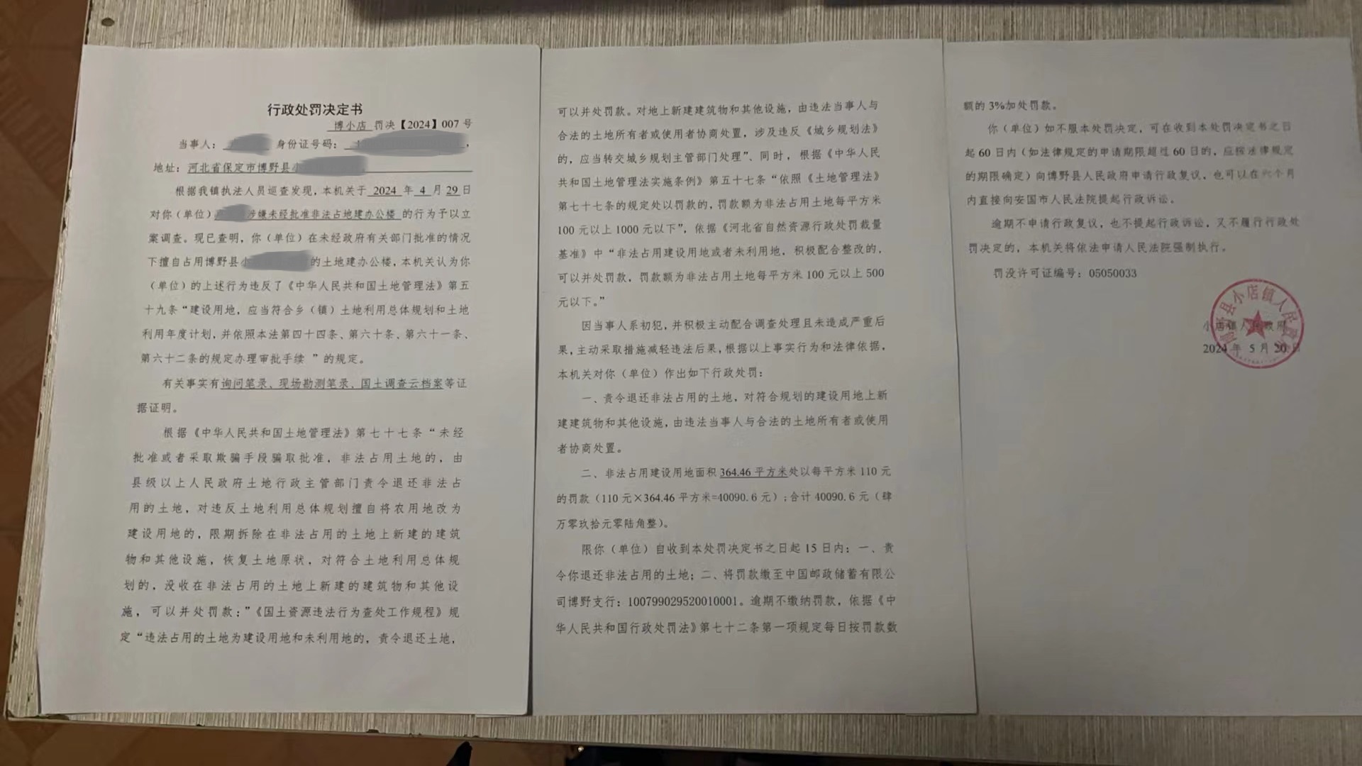 | 博小店 罚决【2024】007号 | 卢亚涛 | 卢亚涛未经批准非... | 行政处罚 | 2024-05-20 | 博野县小店镇人民政府 | 点击查看 |
